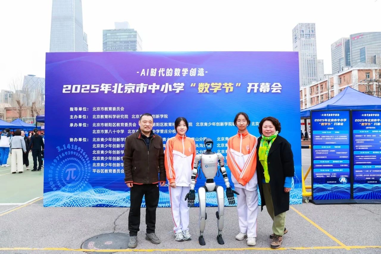 2025年3月14日是第六个“国际数学日”,2025年北京市中小学“数学节”在北京市日坛中学开幕。此次活动由北京市教育委员会指导,北京教育科学研究院、北京青少年创新学院主办,朝阳区教育委员会、朝阳区教育科学研究院、北京青少年创新学院朝阳分院等单位共同承办。我校张燕霞老师、张捷老师和初一(7)班侯梦珊、金闿澜两位同学代表我校参加了此次活动。